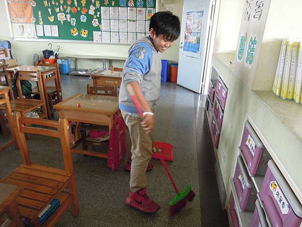 放學後,咱們的阿義主動留下來,幫大家整理環境